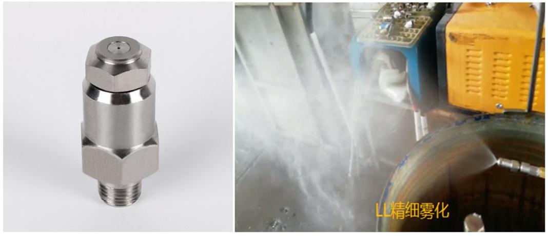 特點: LL 精細霧化噴嘴液滴大小為非常細小(約 50-80μm),噴霧角度約40-160°,形成霧狀噴霧效果。利用高壓水泵即可形成微細的錐形噴霧,可拆卸式噴頭,配備內置過濾網;