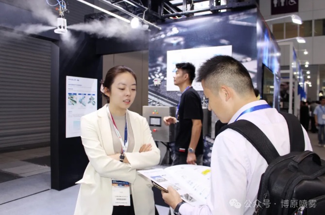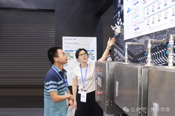 博原噴霧作為噴霧系統研發制造的前沿企業與松下電器強強聯合,現場噴霧展示區吸引了眾多觀眾駐足交流及體驗“不濕的噴霧”,并表達了強烈的合作意向。
