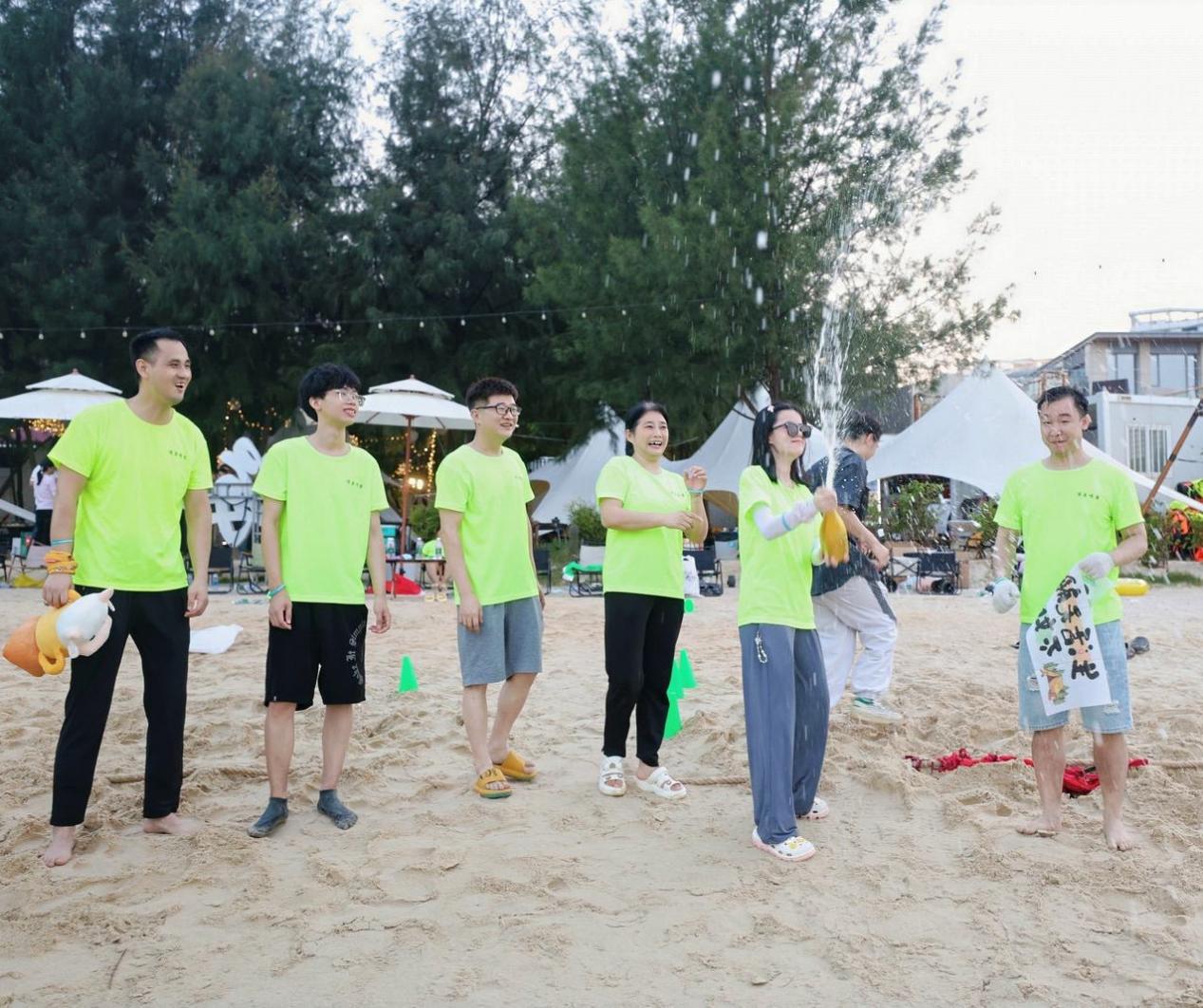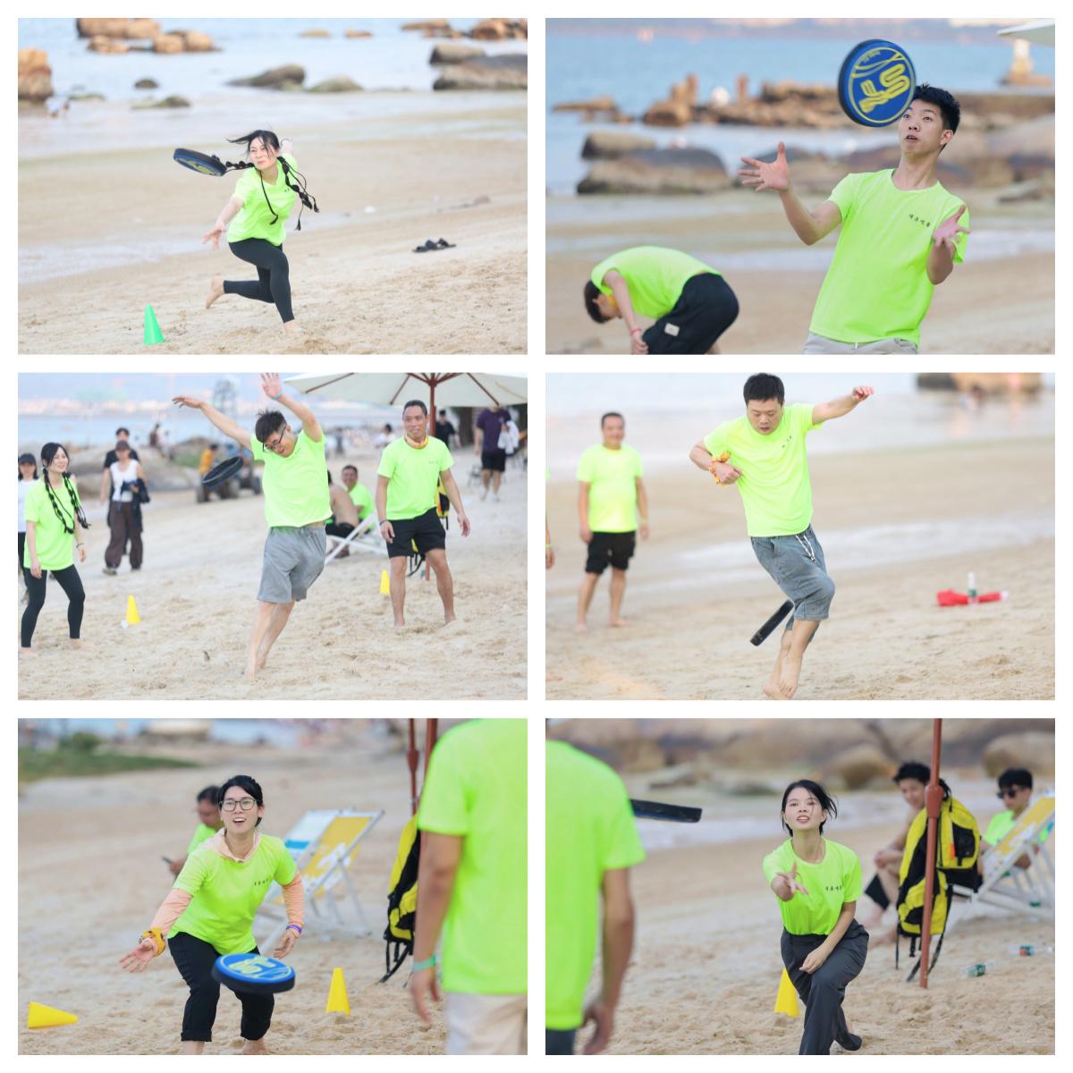 沙灘飛盤:各隊戰(zhàn)術(shù)頻出,精準投擲與靈活走位引來圍觀同事的吶喊助威;