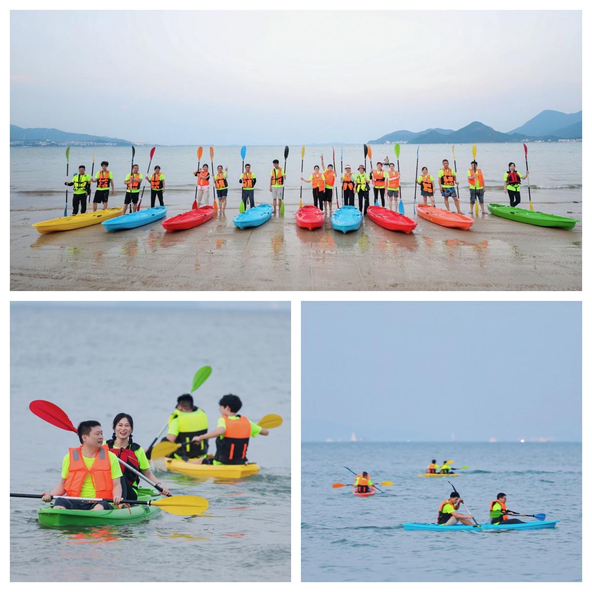 競技結(jié)束后,部分同事?lián)Q上裝備,體驗海上皮劃艇的刺激。一艘艘小艇劃開波浪,笑聲與海浪聲交織成趣。