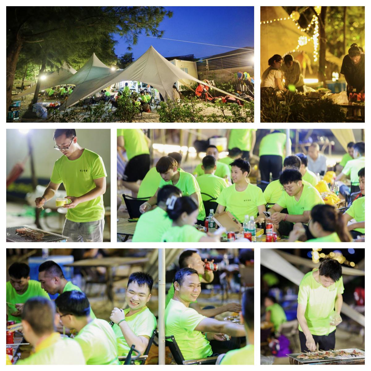 夜幕降臨后,營地亮起星星燈串,炭火上的烤肉滋滋作響,同事們舉杯暢飲,戶外KTV更成為"麥霸"們的秀場——從經(jīng)典老歌到熱門rap,歌聲與掌聲回蕩在海濱,將一天的疲憊化為酣暢淋漓的回憶。