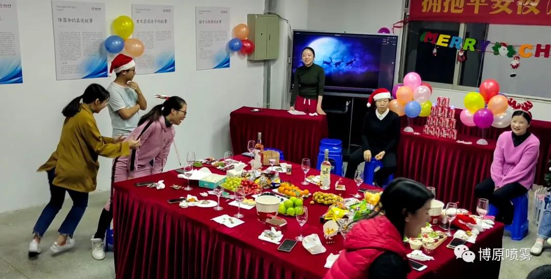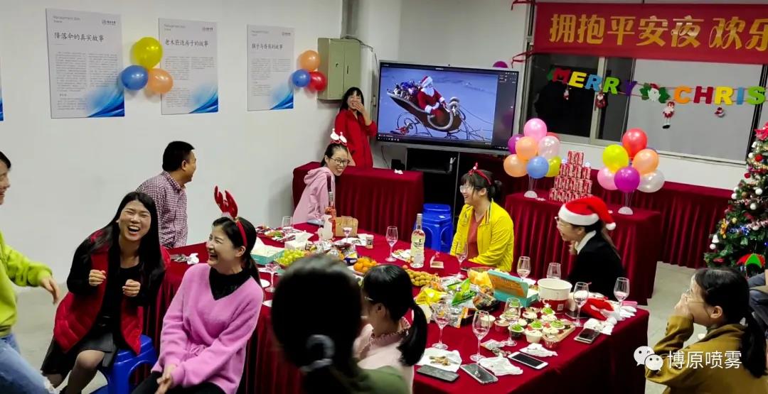 12月24日晚,歡笑聲、音樂聲、充滿了整個博原噴霧廠區。為豐富員工的文化生活,營造良好的圣誕節日氛圍,促進員工之間的溝通和交流,公司組織開展了2020年圣誕節狂歡Party。