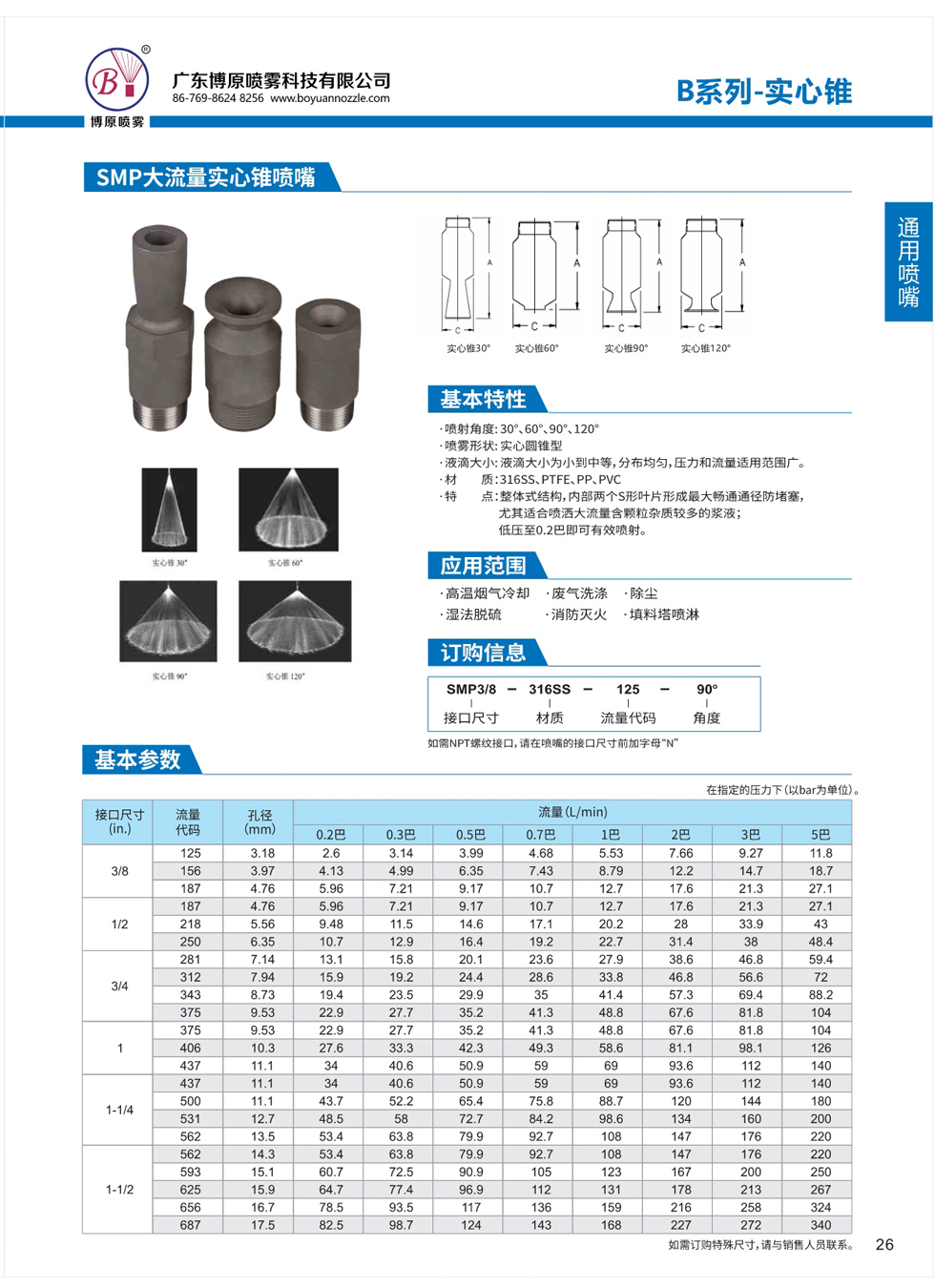 整體式結構,內部兩個S形葉片形成最大暢通通徑防堵塞,尤其適合噴灑大流量含顆粒雜質較多的漿液;低壓至0.2巴即可有限噴射。