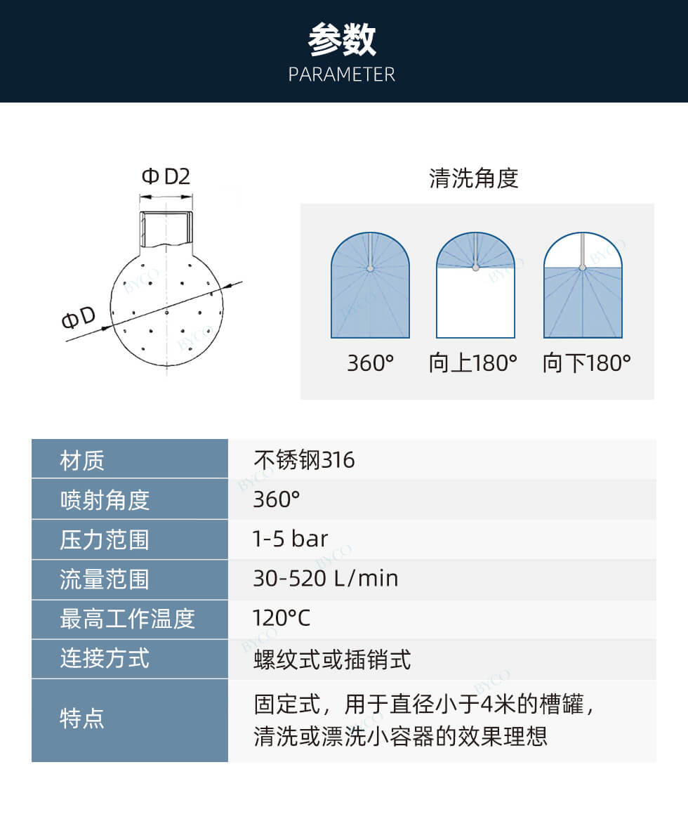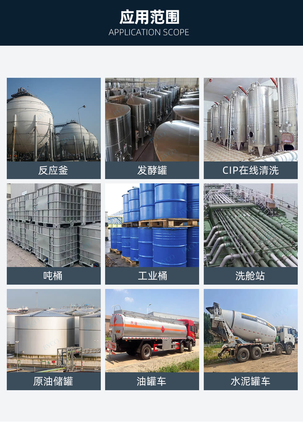 固定式,用于直徑少于4米的槽罐清洗或漂洗小容器的效果理想