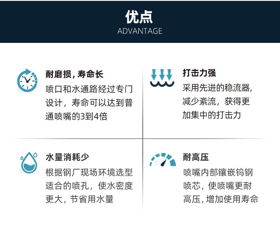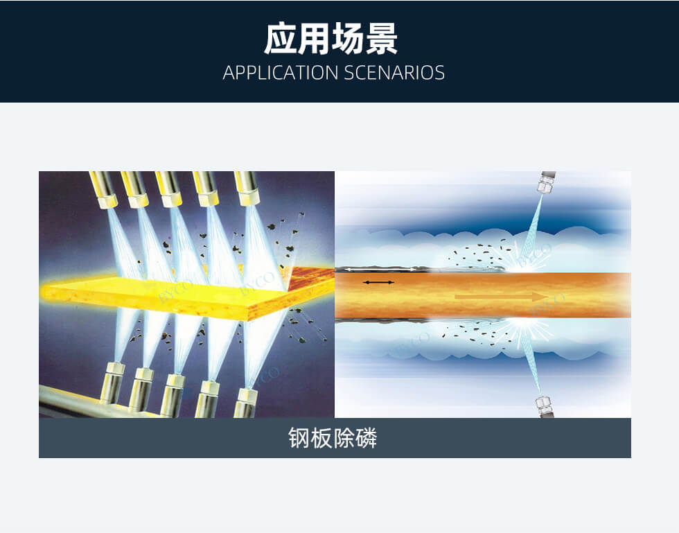 適用范圍:爐后除磷箱、粗軋機除磷、精軋除磷箱、機架間除磷等。