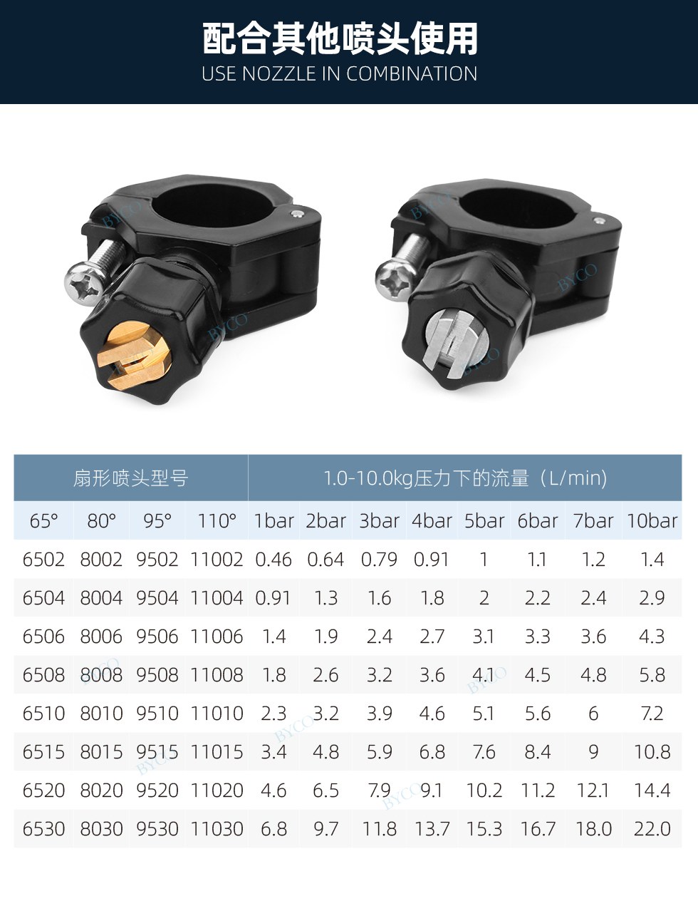 特點:自由組合,可以快速更換噴頭,夾扣式和安裝方式,便于安裝于拆卸。通過螺紋球鏈接噴頭,多用途,可任意精準調(diào)整方向,噴嘴主體可以被反復(fù)使用,只需要替換噴頭,方便檢修和清洗。